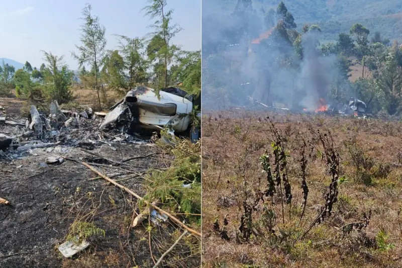 Amashusho yatanzwe na bamwe mu batudage b’i Minembwe, yerekana ibice by’indege ntoya irimo gushya, bakemeza ko ari iyarashwe n’ibitero by’indege z’indwanyi z’ingabo za Leta ya DR Congo, FARDC za Sukhoi-25 na drones ngo zishobora kuba zaturutse i Burundi zikanyura Uvila aho zageze aha mu Minembwe zigakora aya mahano.