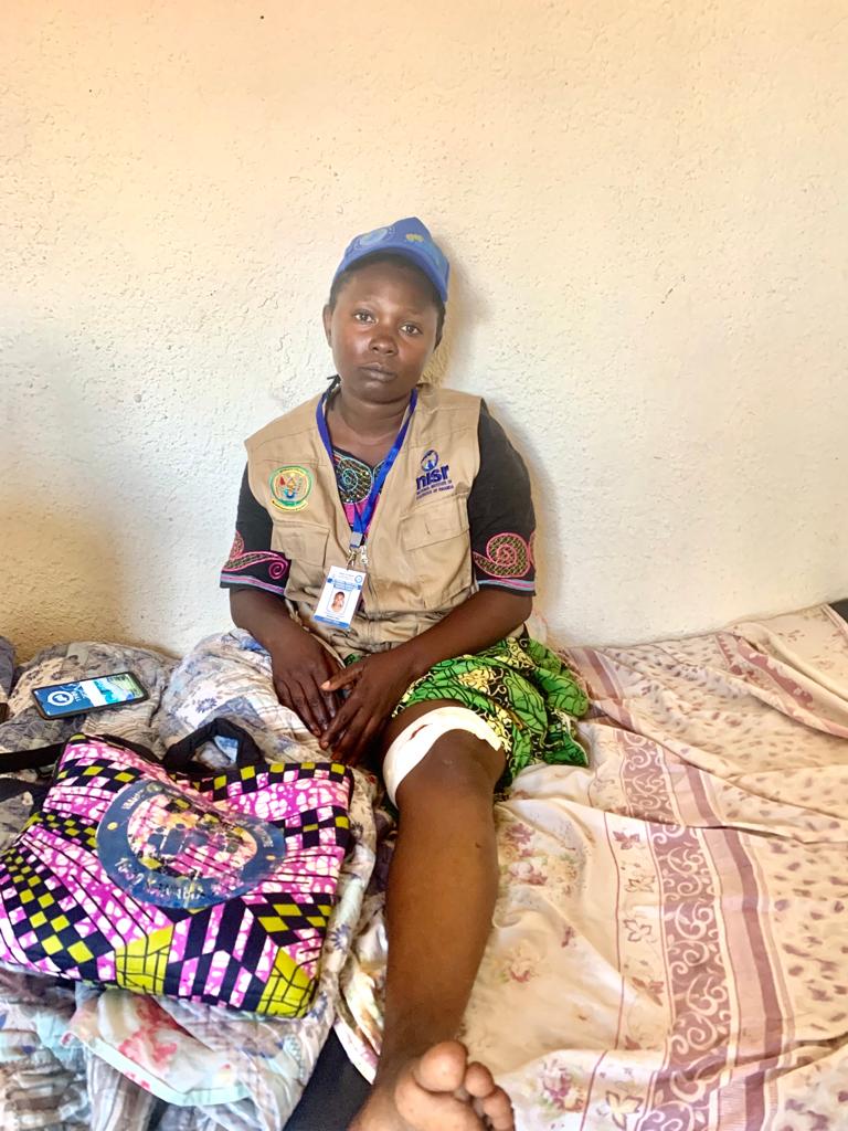 Amafoto yakwirakwijwe ku mbuga nkoranyambaga agaragaza uyu mubyeyi yarumwe n’imbwa ku kuguru hejuru y’ivi.