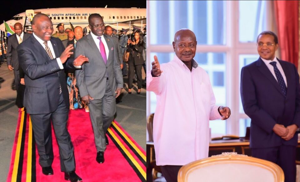 Perezida Cyril Ramaphosa wa Afurika y’Epfo na Jakaya M. Kikwete wayoboye Tanzaniya, bagiriye uruzinduko rw’akazi mu bihe bijya kuba bimwe muri Uganda aho babonanye na Perezida Yoweli Kaguta Museveni uyobora Igihugu cya Uganda. Ramaphosa akaba yaragendereye Uganda nyuma y’iminsi micye avuye mu Rwanda aho yaganiriye na nyakubahwa Perezida wa Repubulika y’u Rwanda Paul Kagame bakaba baragarutse no ku mutekano utifashe neza mu burasirazuba bwa DR Congo. Madame Samia Suluhu wa Tanzania nawe akaba yari mu Rwanda tariki 07 Mata 2024.