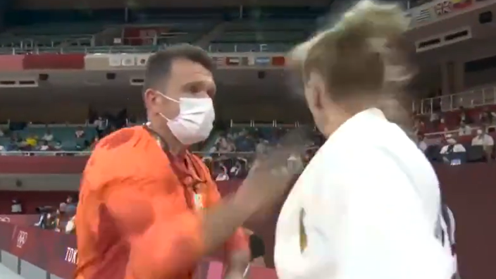 Ku rundi ruhande, umutoza Claudiu Pusa we yihanangirijwe cyane n’ishyirahamwe ry’umukino njyarugamba wa Jido ku rwego rw’isi. Uyu mutoza ukurikirana umukinnyi nawe w’umudage witwa Marytna Trajdos yagaragaye mu mashusho yakwirakwiye ku mbuga nkoranyambaga kuri uyu wa Kabiri, ubwo mbere y’umukino uyu mutoza azunguza cyane umukinnyi we ndetse akabanza kumukubita urushyi rushyushye mbere y’uko yinjira mu mukino.