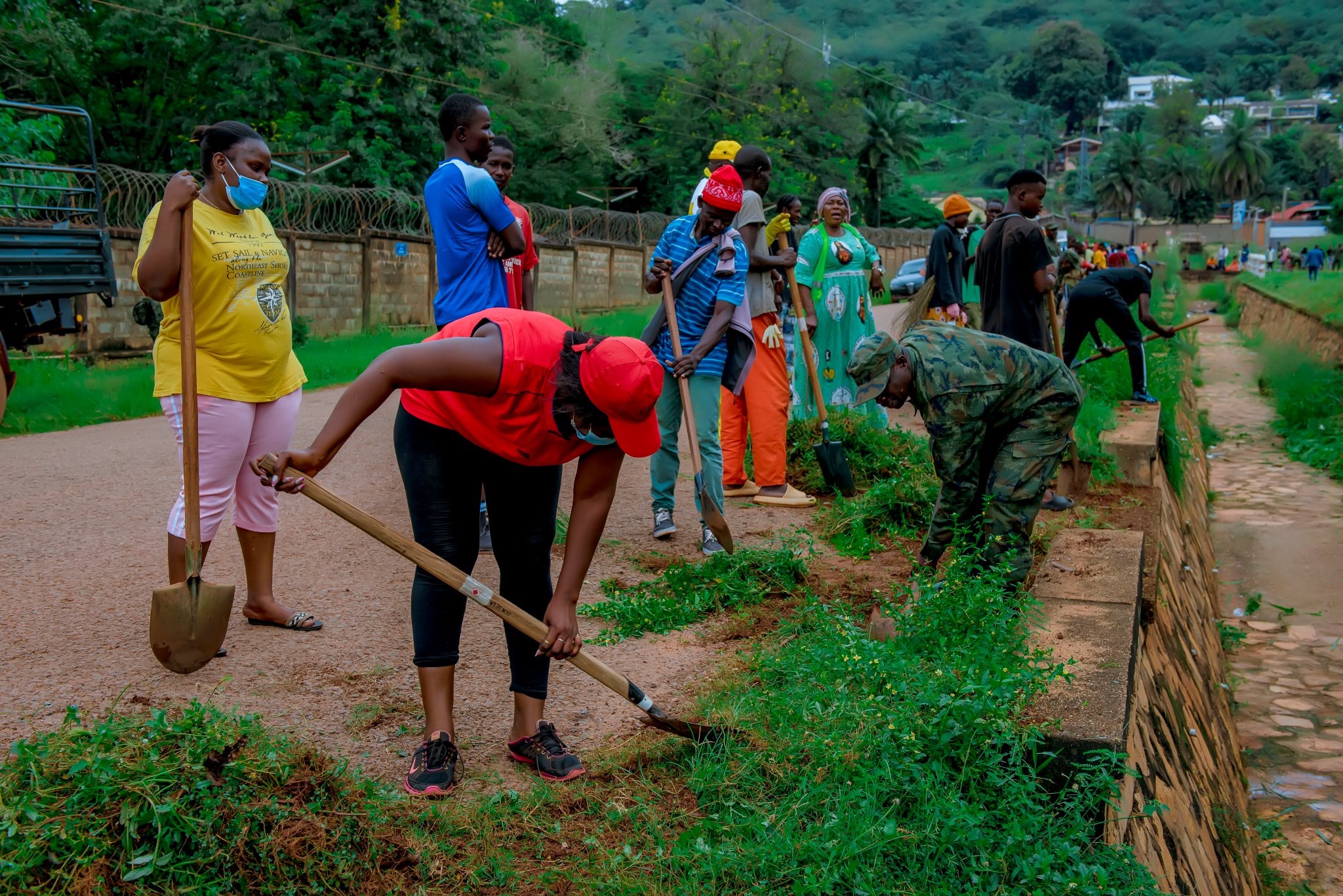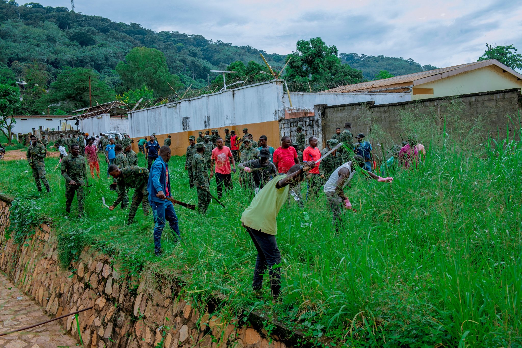 Ibikorwa by’ingabo z’u Rwanda zifatanyije n’ubuyobozi bw’Umujyi wa Bangui ndetse n’abaturage mu gukora umuganda, byibanze ku gusukura ibice (quartiers) zitandukanye, batema ibyatsi ndetse baharura inzira zari zararengewe n’ibyatsi.
