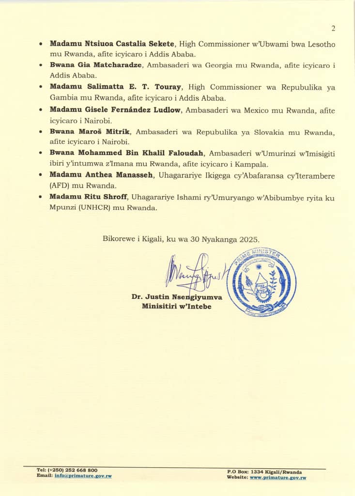 Mu bindi Inama y’Abaminisitiri yemeje, harimo kandi itangwa ry’ubutaka bwa Leta bugahabwa Africa Health Sciences University (AHSU) kugirango bwubakweho Ishuri Rikuru ry’Ubuvuzi. Iyi nama kandi yemeje abahagarariye Ibihugu byabo n’Imiryango mpuzamahanga mu Rwanda.