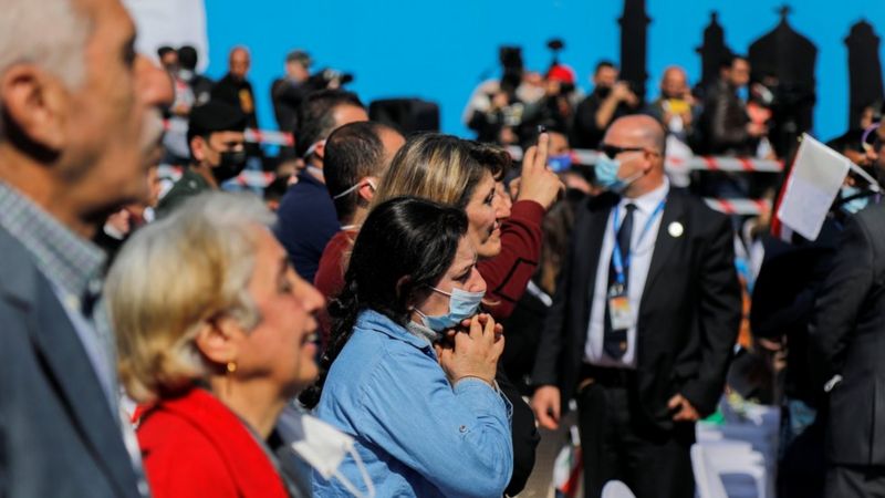 Iraq yagize ubwiyongere bwinshi bw’ubwandu bwa Covid-19 mu kwezi gushize. Uyu mukuru wa Kiliziya Gatolika w’imyaka 84 ndetse n’abamuherekeje bose barakingiwe, ariko mu cyumweru gishize ni bwo Iraq yagezweho n’inkingo za mbere.