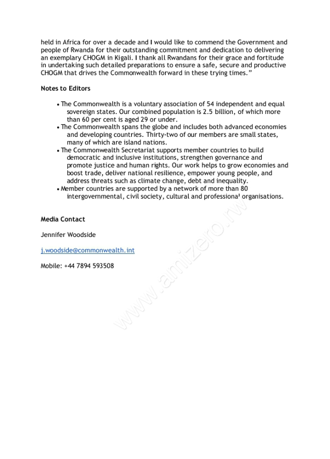 Iri tangazo ryasohowe n’Ubunyamabanga bwa Commonwealth, rivuga ko itariki nshya yemeranyijwe n’Ibihugu bigize uyu muryango, ari tariki 20 Kamena uyu mwaka wa 2022.