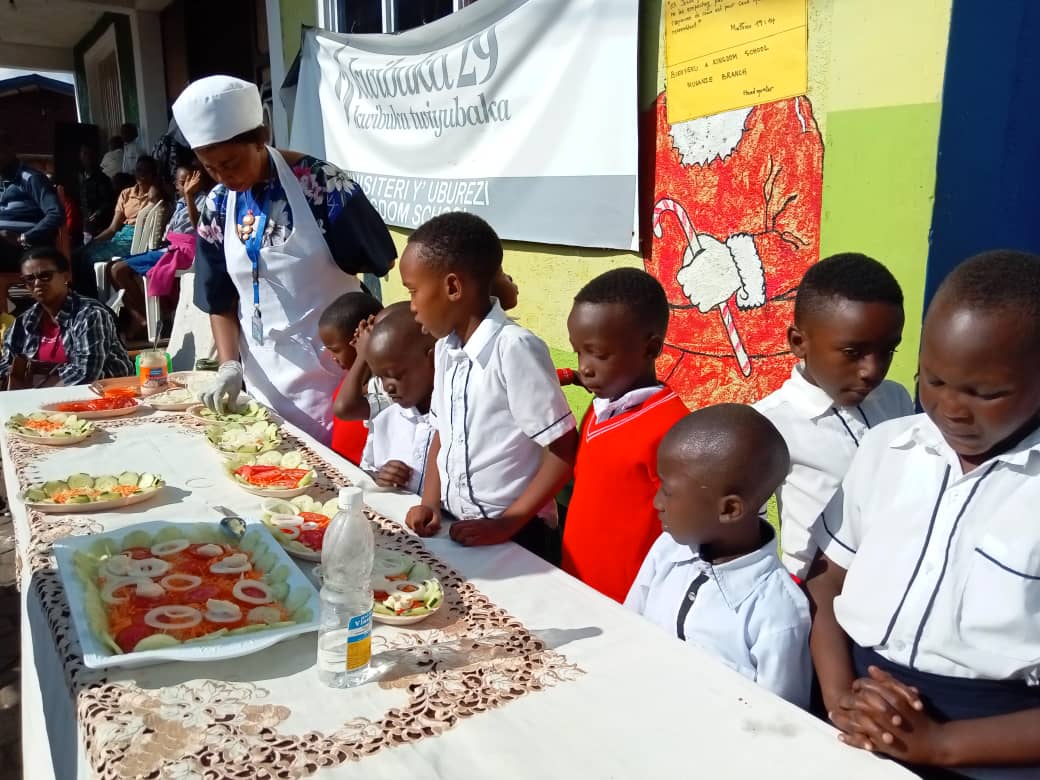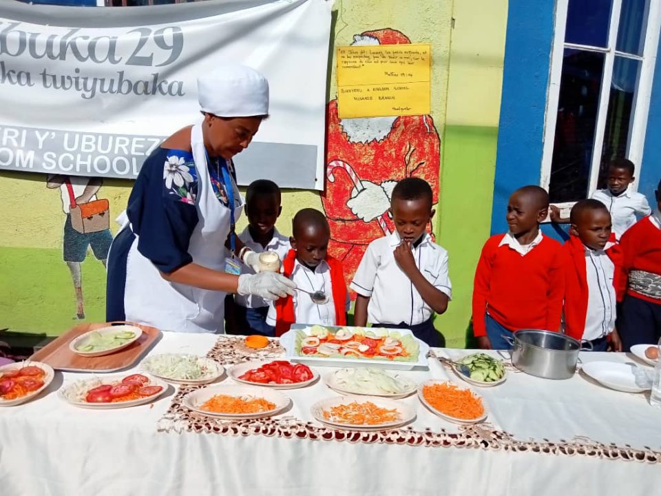 Yagize ati: “Urabona aba bana biga muri Kingdom School, abenshi baza nta kintu kijyanye n’uturimo two mu rugo bazi. Iyo bageze hano rero tubigisha kuri twa turimo; nko guteka umureti, gukora salade, gucuranga guitar ndetse na piano, mbese utuntu nk’utwo abenshi bashobora gufata nk’ibikorwa bitareba abana bato, tukaba tubikora tugamije kubaka abana bazi icyongereza, igifaransa, siyansi ariko banashobora kwifasha cyangwa bakanafasha imiryango baturukamo mu bundi buzima”.