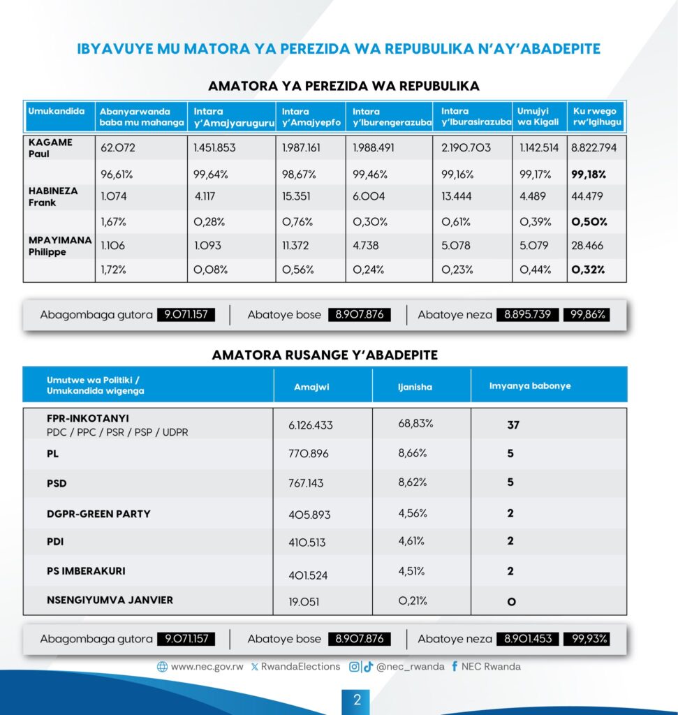 Komisiyo y’Igihugu y’Amatora, NEC yaboneyeho gushimira Abanyarwanda bose uruhare bagize mu myiteguro, ubwitabire n’imigendekere myiza y’amatora, haba mu gihugu imbere no mu mahanga.