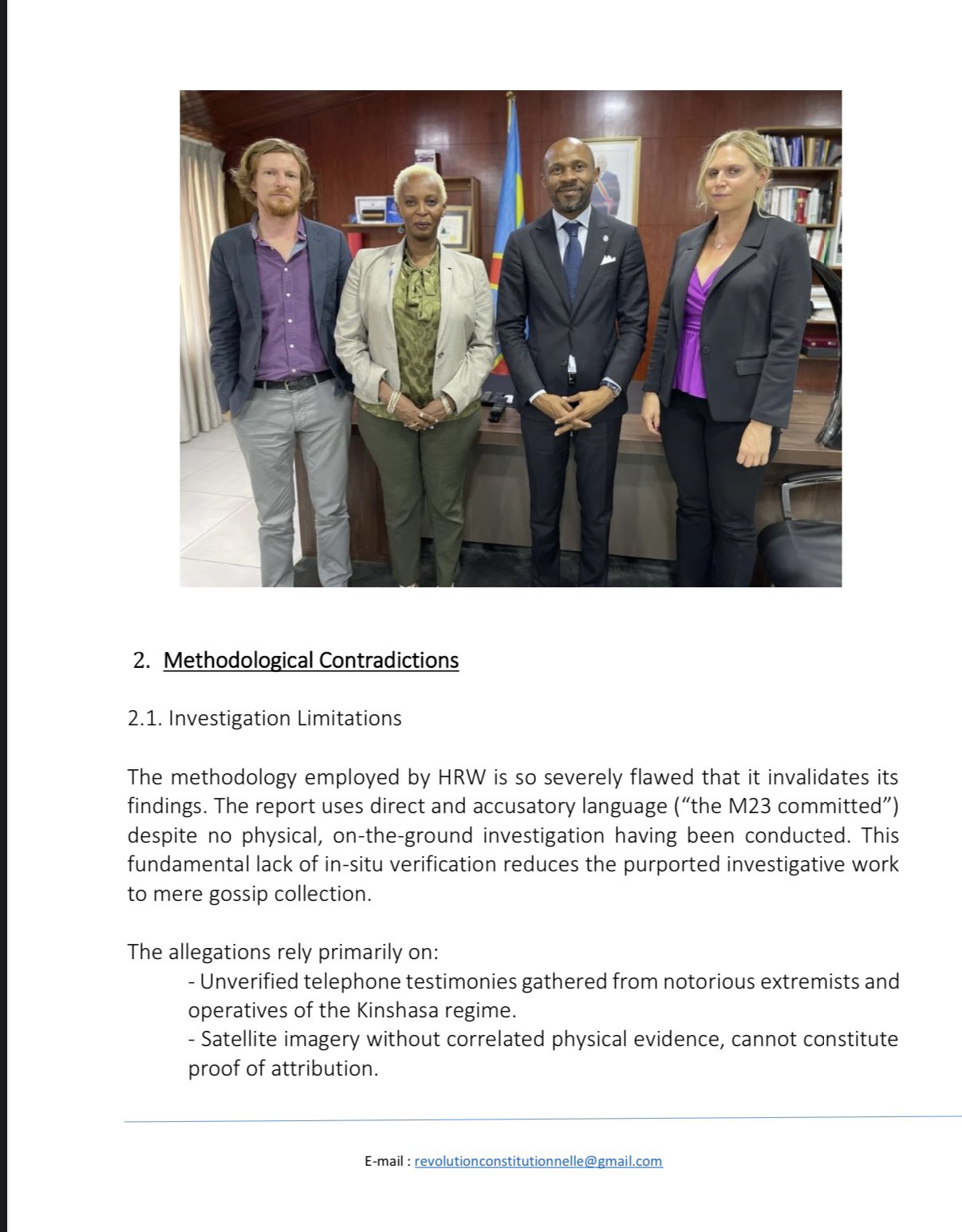 HRW yo ivuga ko yavuganye kuri telefone n’ababonye ubwo bwicanyi n’ababurokotse ndetse ikoresha n’amashusho y’icyogajuru. Kuri ibi bivugwa, hari abavuga ko izi raporo zaba zikorwa na Kinshasa igamije kwanduza isura ya M23 maze ngo igakoresha abakozi b’iyi miryango mpuzamahanga (kubera ruswa), bagatangaza ibyo batahagazeho.