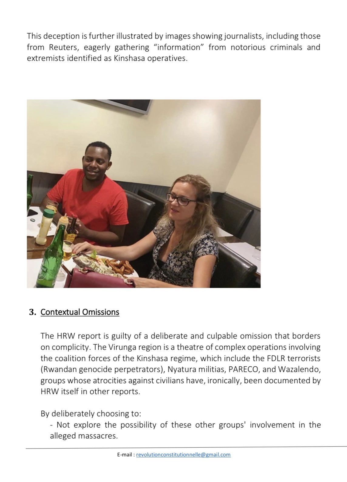 BBC yatangaje ko M23 ivuga ko ibyo bidashobora gusimbura kuhigerera kwa HRW kandi ko abo yavuganye na bo ari abahezanguni bazwi cyane bakorera ubutegetsi bwa Kinshasa kuko ngo bagamije kwanduza isura yabo bahimba ibyaha bitabayeho bagakoresha iturufu yo gutanga ruswa mu bo bakeka ko bageza ijwi kure.