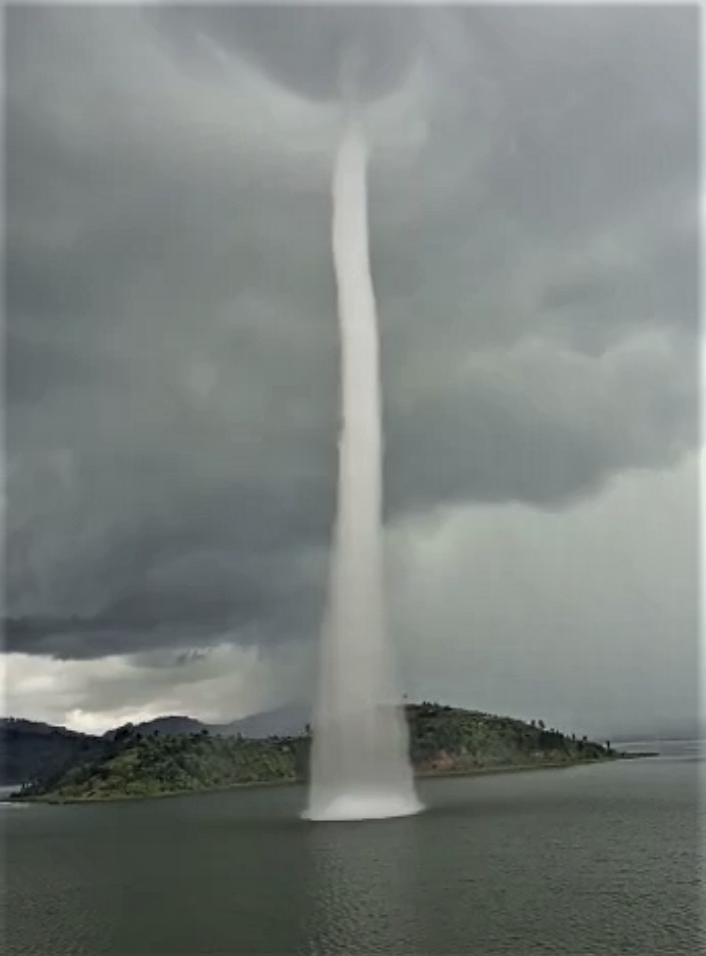 Iyo ubirebera kure, ubona bisa nk’amazi azamuka mu kiyaga agana ku bicu. Siko bimeze ahubwo ni imiyaga izamuka n’imanuka iba iri muri cya gicu kiri hejuru y’amazi cyitwa “Cumulonimbus”. Abavugako rero hari amazi yazamutse sibyo kuko ibyo babonye bimeze nk’inkingi y’umweru ari urwo ruhurirane rw’imiyaga iba igaragara.