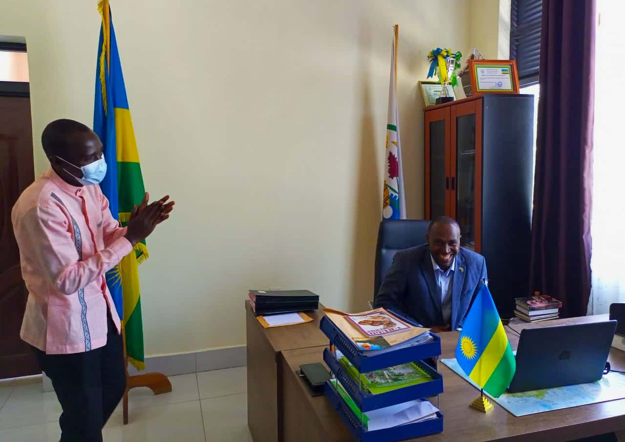 Mayor Ramuli na Gitifu Innocent mu biro bishya bishimira imiterere yabyo.