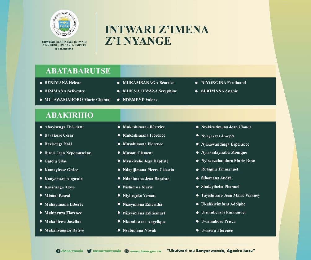 Mu mwaka wa 2001, Leta y’u Rwanda yashyize abana b’i Nyange mu cyiciro cy’Imena mu Ntwari z’u Rwanda, zirimo umunani (8) bapfuye n’abandi 39 barokotse, bose bakaba bibukwa buri mwaka nk’abana bakoze ibikorwa bidasanzwe bitashoborwa na buri wese ndetse kuri ubu ibikorwa byabo bikaba byigishwa mu mashuri n’ahandi hose nk’urugero rwiza rwa ‘Ndi umunyarwanda’.