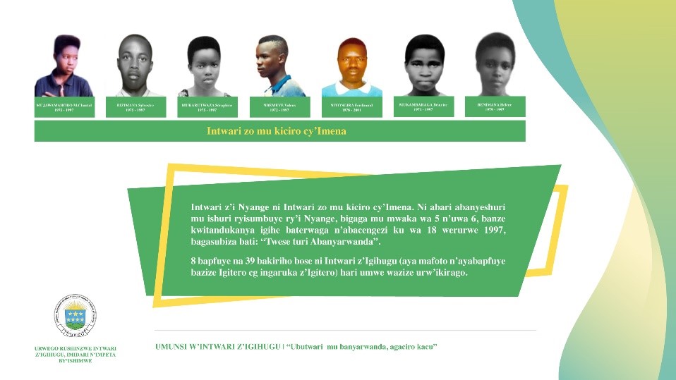 Madame Mukasarasi Godelive, Umuyobozi wungirije w’Urwego rushinzwe Intwari z’Igihugu, Imidari n’impeta by’ishimwe, yagarutse ku butwari bw’aba banyeshuri b’i Nyange, ahamya ko kuba Intwari bitagombera imyaka, igihagararo cyangwa inkomoko, ko ahubwo biterwa n’ubumuntu, ubwitange, ubunyangamugayo n’ izindi ndangagaciro nyarwanda zatumye aba banyeshuri banga kwitandukanya ubwo umwanzi yabyifuzaga ngo akomeze umugambi we mubisha agitsimbarayeho na n’ubu wo kurimbura ubwoko bw’abatutsi aho buri hose ku Isi.