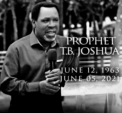 Nkuko byatangajwe n’itorero rye, mu rukerera rwo kuri iki Cyumweru tariki 06 Kamena 2021, Imana yajyanye umugaragu wayo Umuhanuzi TB Joshua mu rugo nkuko bikwiye ku bushake bw’Imana. Ibihe bye bya nyuma ku Isi yabikoresheje umurimo w’Imana. Ibi nibyo yavukiye.