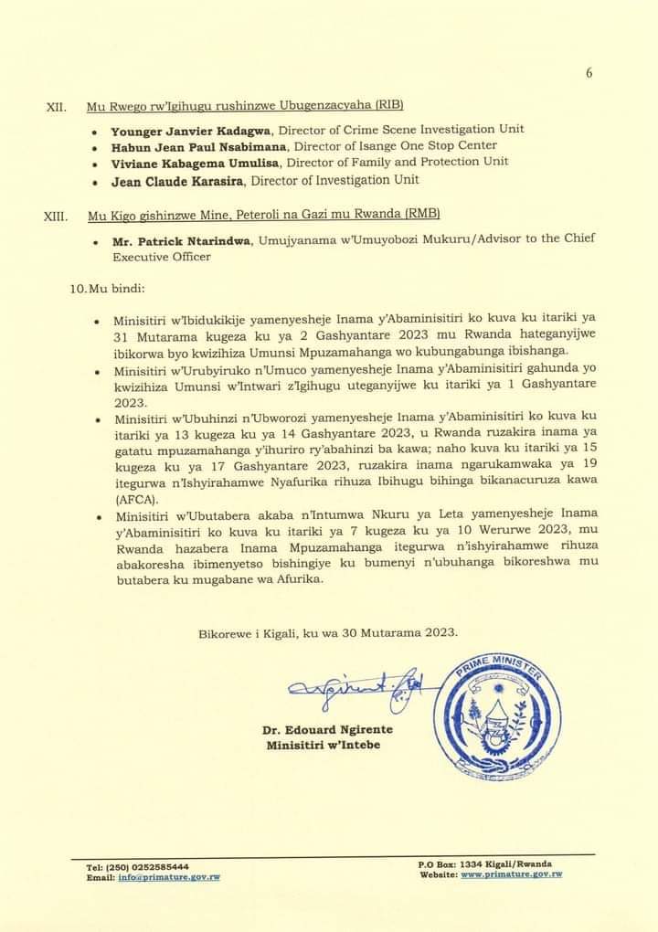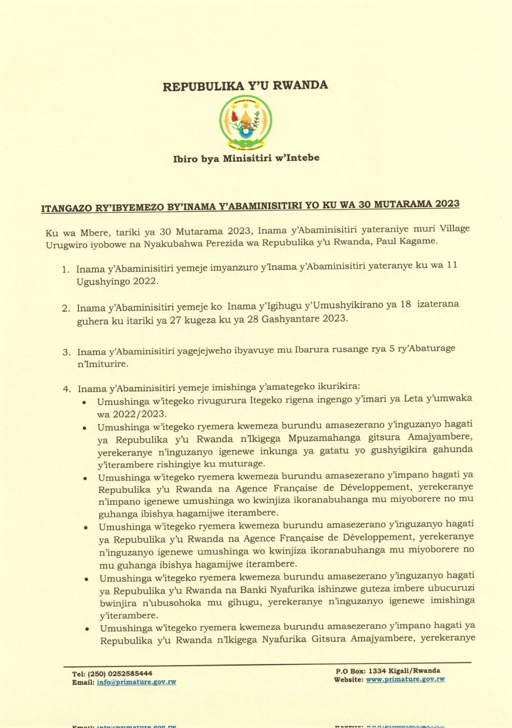 Uyu ni umwe mu myanzuro ikubiye mu Itangazo ry’ibyemezo by’Inama y’Abaminisitiri yateranye ku wa Mbere tariki 31 Mutarama 2023 iyobowe na Nyakubahwa Perezida wa Repubulika, Paul Kagame muri Village Urugwiro.
