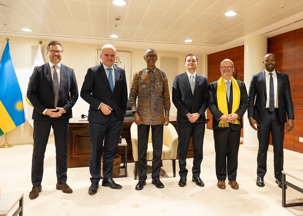 Kuri uyu wa Gatanu tariki 10 Mutarama 2025, Perezida wa Repubulika Paul Kagame, yagiranye ibiganiro n’Umuyobozi Mukuru wa Bayer Pharmaceuticals, Stefan Oelrich, hamwe na Dr. Shaheer Bardissi uyobora Minapharm Pharmaceuticals, ku bijyanye no gushora imari mu ikorwa ry’imiti ku Mugabane wa Afurika.