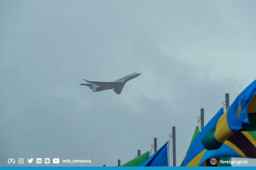 Indege itwaye Perezida Paul Kagame imaze gufata ikirere iva muri Tanzania/Photo Internet