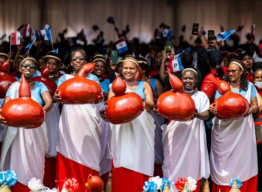 Imbere y’imbaga y’abanyamuryango basaga ibihumbi 200, Chairman Paul Kagame yabajije abaturage niba aka gace kabonekamo amasaka. Ati: “Harya aha mugira amasaka? Ubu se muzi kwenga neza ikigage? Niba mubizi rero nyuma y’amatora nzagaruka manze ndebe ko muzi kwenga koko, ubundi dutarame twinywera ikigage”.