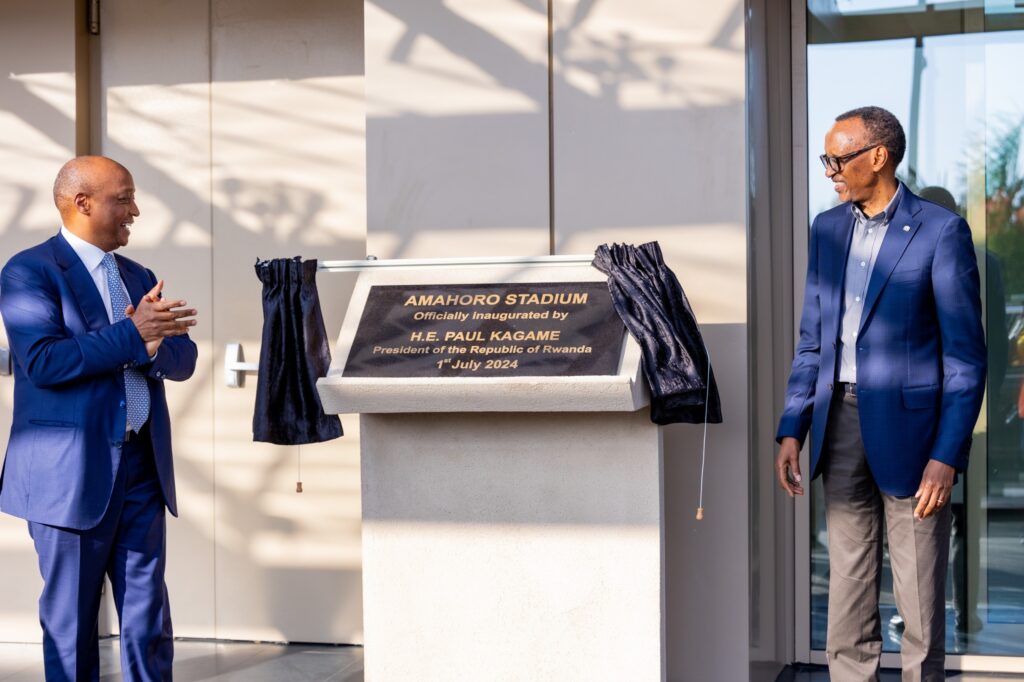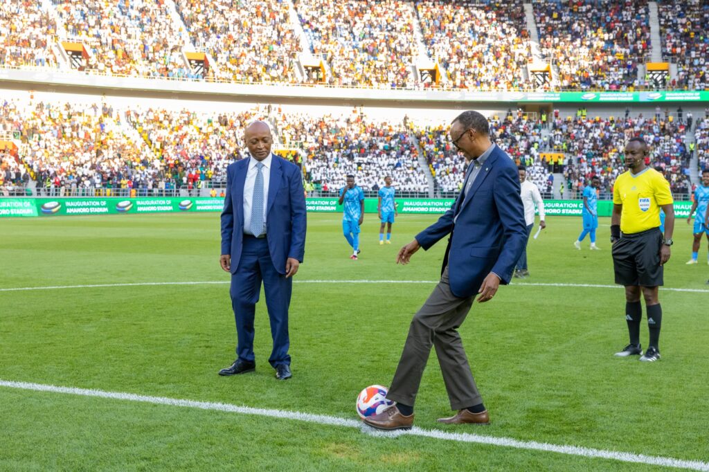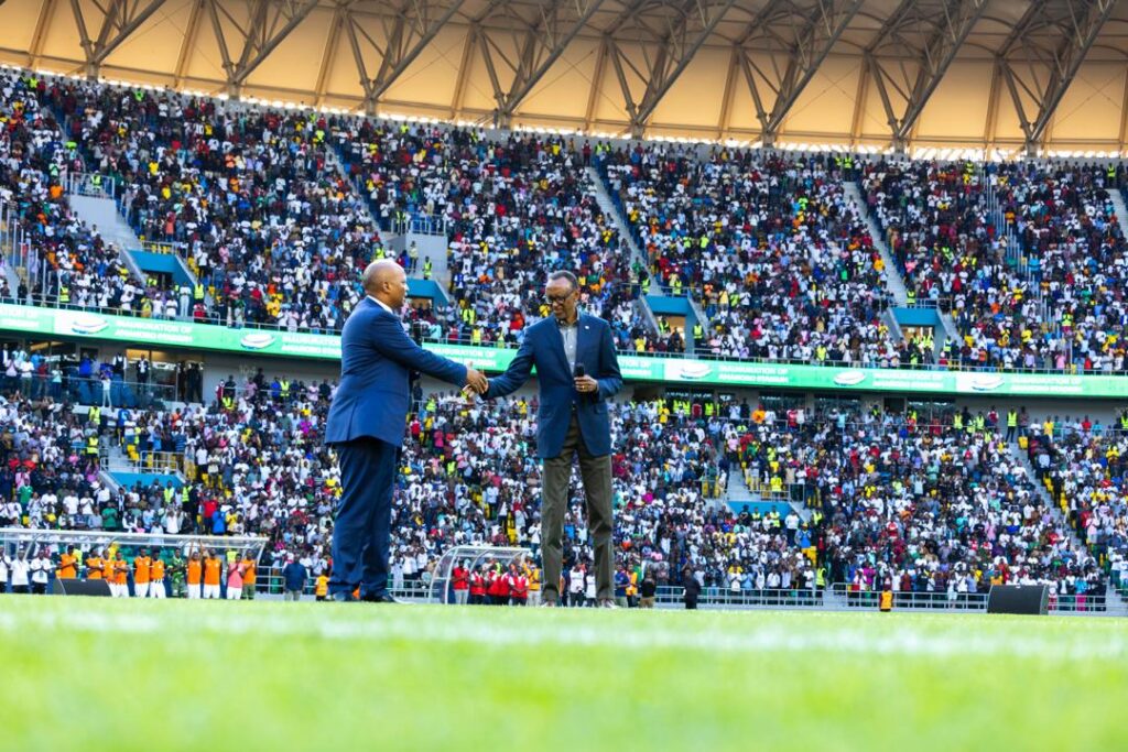 Imbere y’imbaga y’abafana buzuye Stade Amahoro ivuguruye, Perezida wa Repubulika Paul Kagame ari kumwe n’Umuyobozi w’Impuzamashyirahamwe y’Umupira w’amaguru muri Afurika (CAF), Dr. Patrice Motsepe, babanje kureba bimwe mu bice by’iyi Stade iri mu zigezweho ku mugabane wa Afurika ikaza no mu cyiciro cya mbere bivuze ko iri no mu zikomeye ku Isi, maze hakurikiraho umuhango nyiri izina wo gufungura Stade Amahoro ivuguruye.
