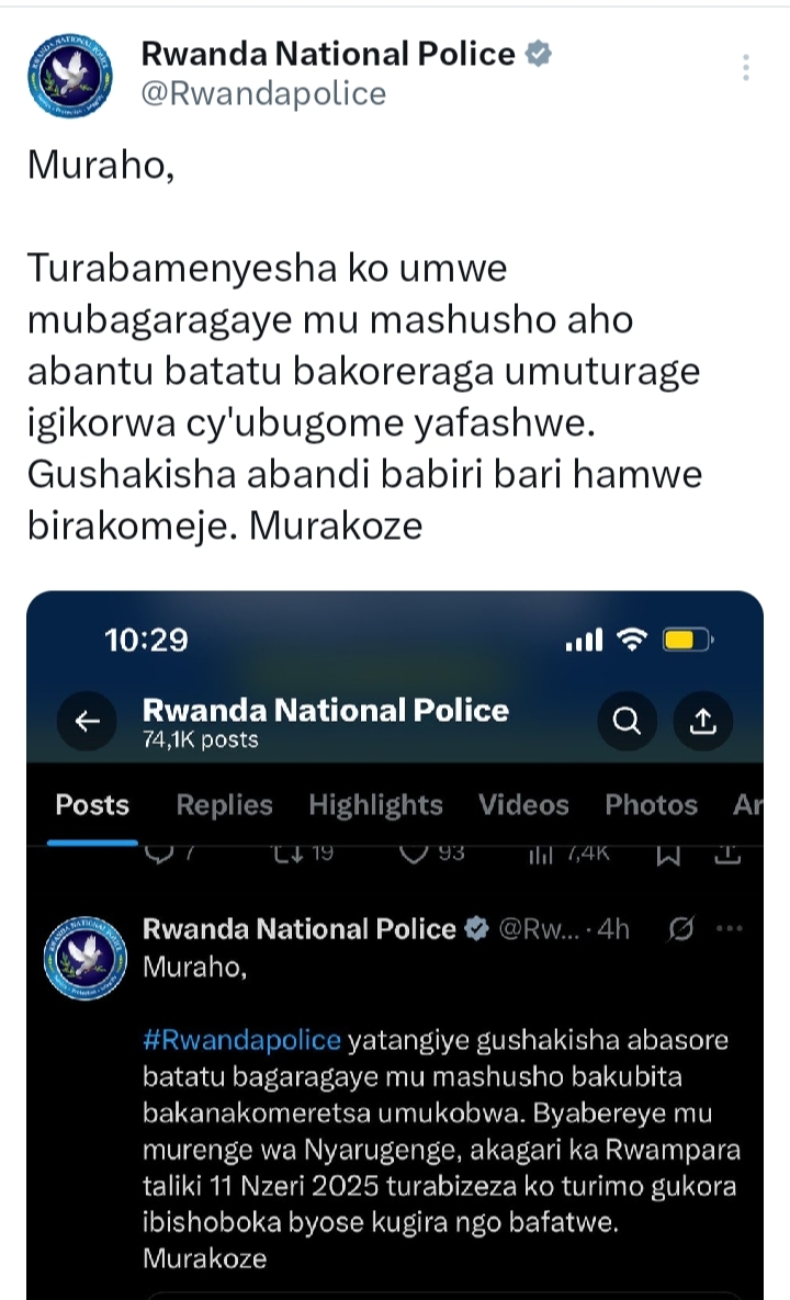 Ubu butumwa bukomeza bugira buti: “Byabereye mu murenge wa Nyarugenge, Akagari ka Rwampara taliki 11 Nzeri 2025. Turabizeza ko turimo gukora ibishoboka byose kugira ngo bafatwe.”