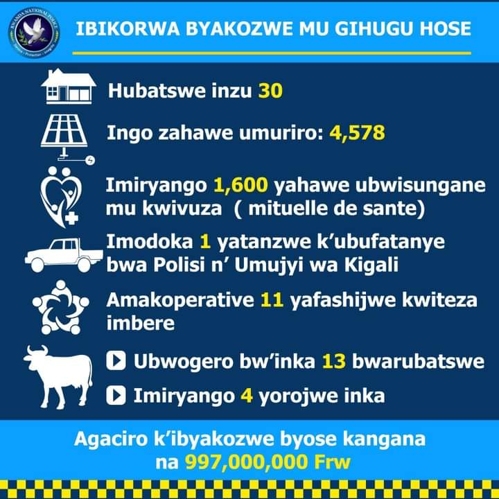 Kuri uyu wa Kabiri tariki 28 Ukuboza 2021, Polisi y’u Rwanda, RNP, yashyikirije abaturage ibikorwa byakozwe mu kwezi kwahariwe Polisi, bifite agaciro ka Miliyoni 997 z’amafaranga y’u Rwanda.