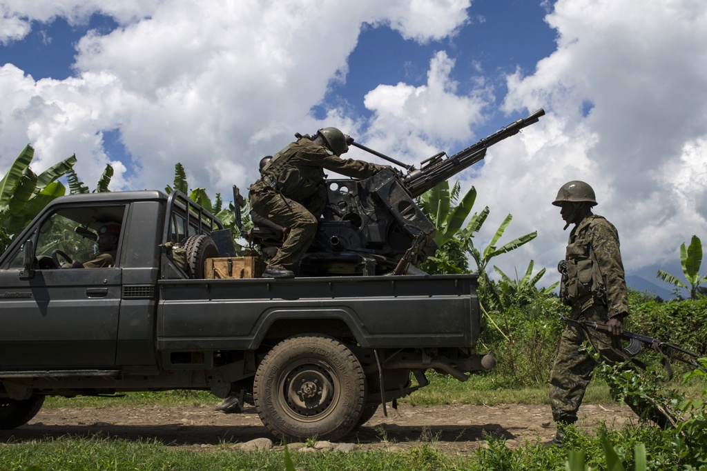 Umusirikare wa FARDC ku mbunda itwarwa n’imodoka mu bice bya Jomba/Photo Internet