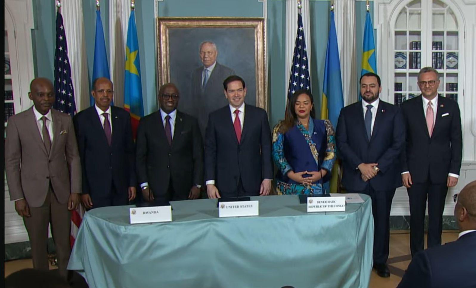 Gusinya aya masezerano y’amahoro byabereye i Washington DC muri Leta Zunze Ubumwe za Amerika ku mugoroba wo kuri uyu wa Gatanu tariki 27 Kamena 2025, hagati ya Minisitiri w’Ububanyi n’Amahanga w’u Rwanda, Amb Olivier Nduhungirehe n’uwa DR Congo, Thérèse Kayikwamba Wagner.