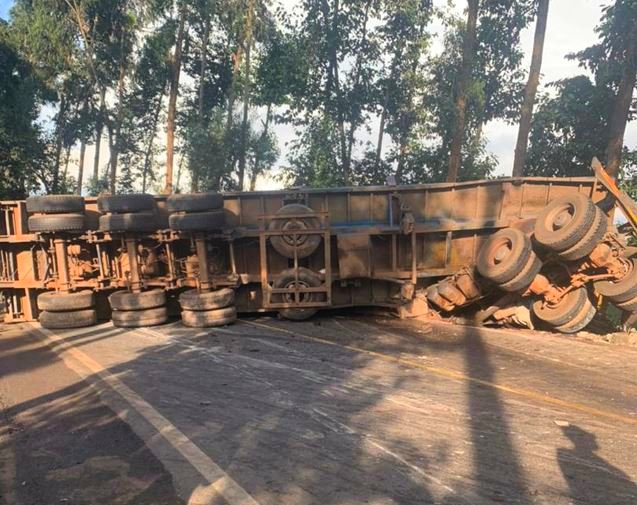 Abaturage batuye muri Nyakiriba babonye uko iyo mpanuka yabaye, bavuze ko ikamyo yari itwaye ibyuma biremereye cyane yabuze feri ikagwa mu muhanda, kubera uburebure bwayo ikaba yafunze uyu muhanda.