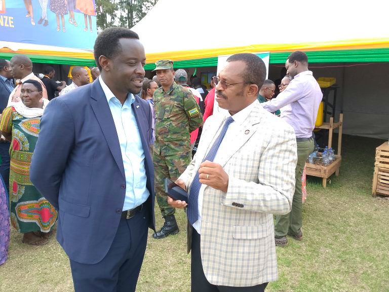 Umuhangamirimo Dr Sina Gerard aganira n’Umuyobozi w’Akarere ka Gicumbi.