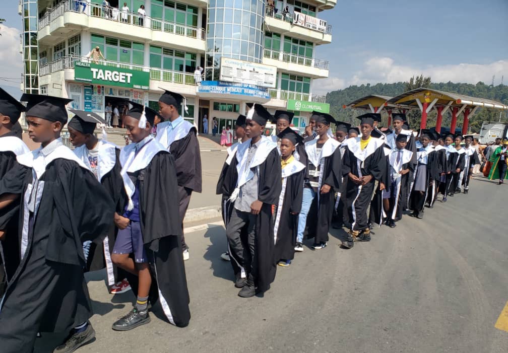 Bamwe mu banyeshuri barangije ibyiciro bitandukanye muri Wisdom Schools mu mwambaro wabugenewe.