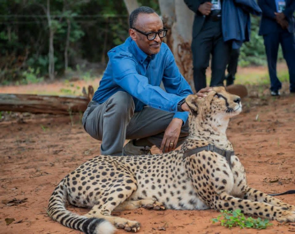 Perezida Paul Kagame akora ku nyamaswa ya Cheetah